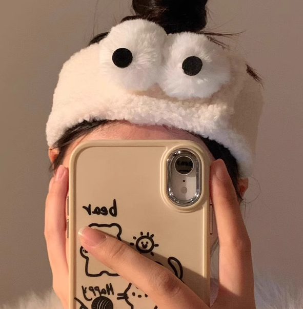 可爱大眼睛洗脸发箍女敷面膜洗漱卡通毛绒束发带米白色