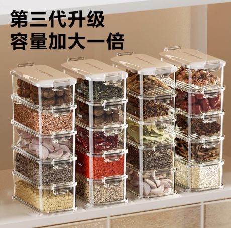 新款多功能香料收纳盒厨房家用八角桂皮花椒大料佐料储物盒调料罐