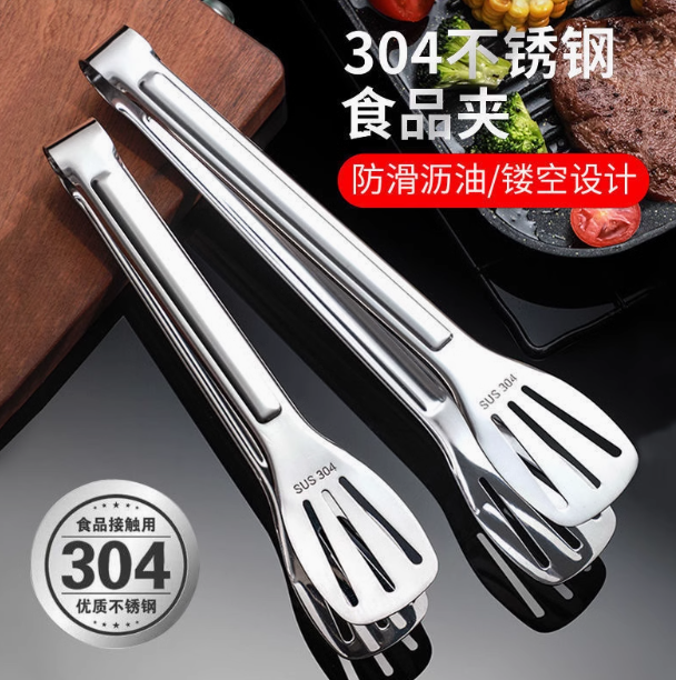 304不锈钢加厚食品夹子厨房烧烤烤肉煎牛排家用食物商用面包夹
