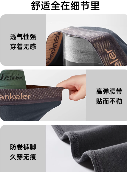 CALIENKERLER男生内裤莫代尔平角L码黑色+深灰+绿